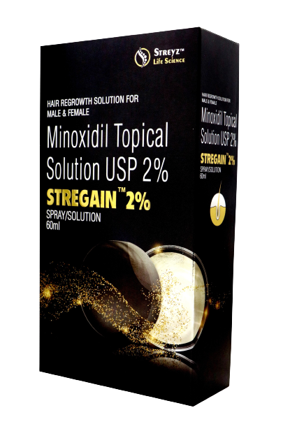 STREGAIN Solution works from the roots to promote hair growth. When applied, this Minoxidil topical solution stimulates follicles and does away with weak hair. It makes hair in the telogen (non-growing) phase fall out and be replaced by hair in the anagen/growing phase.